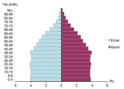 Çalışma çağı olarak adlandırılan 15-64 yaş grubunda bulunan nüfus 2018 yılında bir önceki yıla göre sayısal olarak %1,4 arttı. Buna göre, çalışma çağındaki nüfusun oranı %67,8; çocuk yaş grubu olarak tanımlanan 0-14 yaş grubundaki nüfusun oranı %23,4; 65 ve daha yukarı yaştaki nüfusun oranı ise %8,8 olarak gerçekleşti.